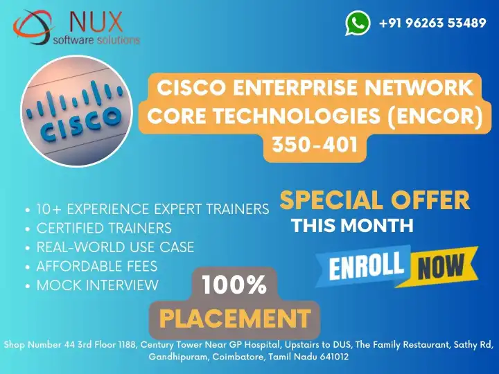 Cisco ENCOR 350-401 Training and Certification in Coimbatore Course Overview The Cisco Enterprise Network Core Technologies (ENCOR 350-401) course is…