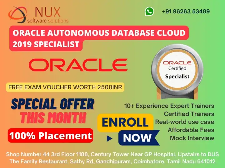 Oracle Autonomous Database Cloud Professional Training and Certification in Coimbatore Advance your expertise in cloud database management with our Oracle…